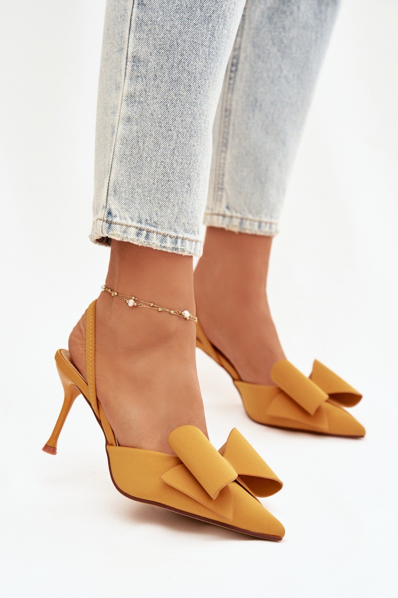 Stiletto Heels with Open Hells and Bow Yellow Eklevia