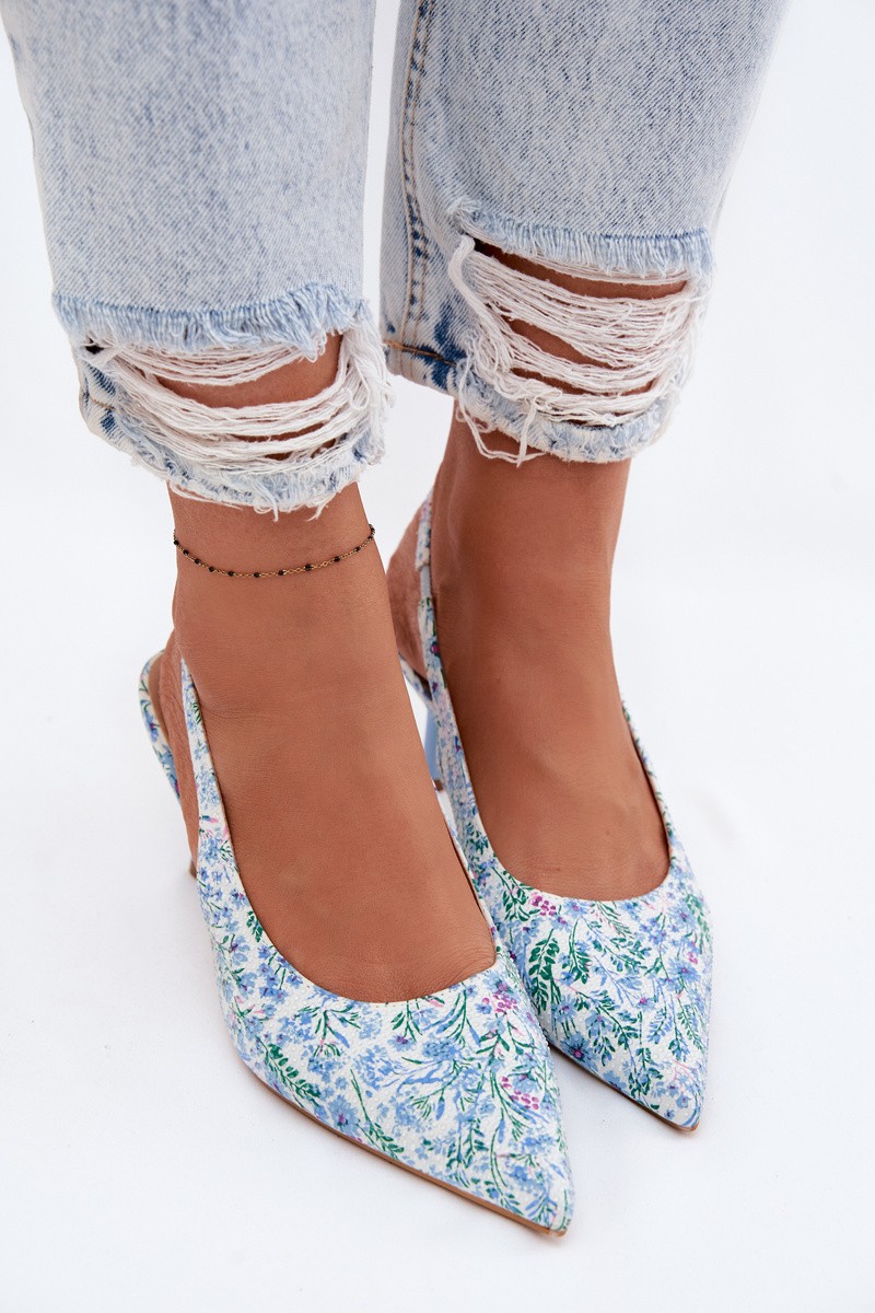 Women's high heel sandals decorated with shimmering elements resembling zirconia are a unique choice for women who like to attract attention. Eye-catching floral motifs add a feminine touch. The model features pointed toes that highlight elegance and visually slim the foot. The slender heel adds lightness to the silhouette and emphasizes its feminine shape. Perfect for special occasions, evening outings, or celebrations – a combination of sparkle, elegance, and fashionable style. When choosing a size, please refer to the size chart.