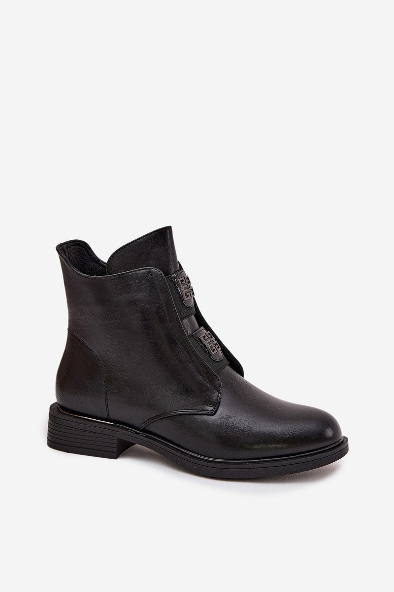 Moteriški pašiltinti aulinukai iki kulkšnių su žemu kulnu ir dekoracijomis, juodos spalvos „Tavressa“
