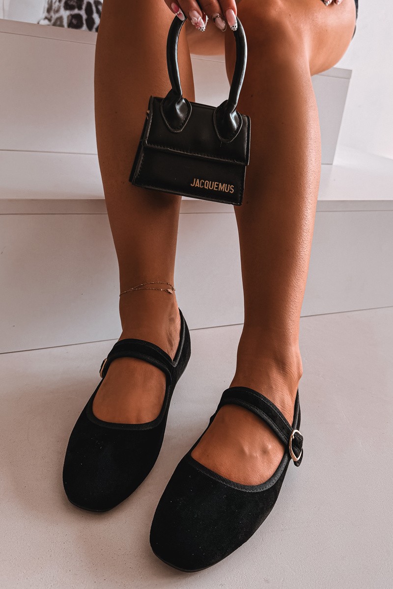 Women's ballerinas made from eco-suede. The flat sole makes the model perfect for all-day wear, providing comfort with every step. Slightly rounded toes emphasize the feminine character of the footwear, while the strap on the instep with a gold buckle adds a stylish accent that draws attention. The soft insole further enhances comfort. This versatile model complements both casual and more elegant outfits – ideal for work, meetings, or walks. When choosing a size, please refer to the size chart.
