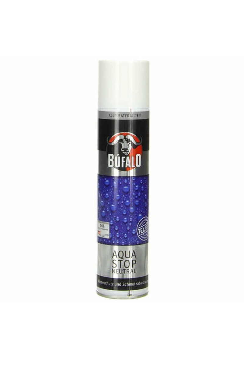 „Bufalo Agua Stop“ – tai preparatas, skirtas visiškam impregnavimui, užtikrinantis veiksmingą apsaugą nuo drėgmės ir tinkantis visų tipų odai, tekstilei ir audiniams. Oda išlieka elastinga ir praleidžia orą. Impregnavimas, žinoma, tinka ir odiniams drabužiams. Prieš naudojimą pašalinkite dulkes ir nešvarumus. Tolygiai purkškite medžiagą maždaug 30 cm atstumu. Būkite atsargūs, kad nesušlapintumėte medžiagos. Nepoliruokite ir nevalykite šlapios odos!