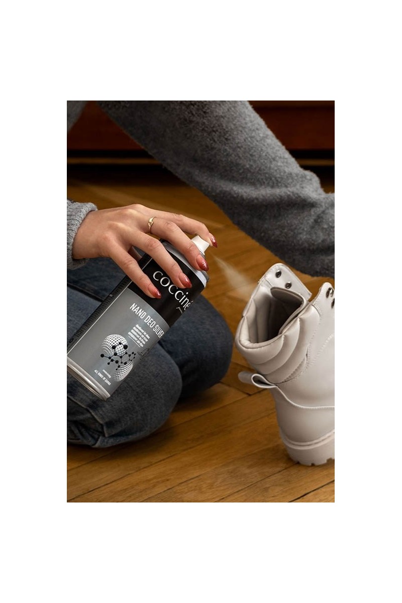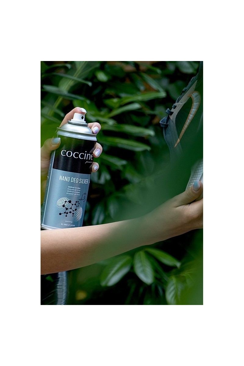 Batų dezodorantas su sidabro ir silicio dioksido nanodalelėmis. Dėl nanodalelių buvimo NANO DEO SILVER apsaugo batus nuo nemalonių kvapų žymiai ilgiau nei tradiciniai dezodorantai. Sidabras pasižymi antiseptinėmis savybėmis ir neleidžia daugintis mikroorganizmams, kurie sukelia nemalonius kvapus batuose. Silicio dioksidas sugeria nemalonius kvapus. Ypač rekomenduojamas sportinei avalynei.