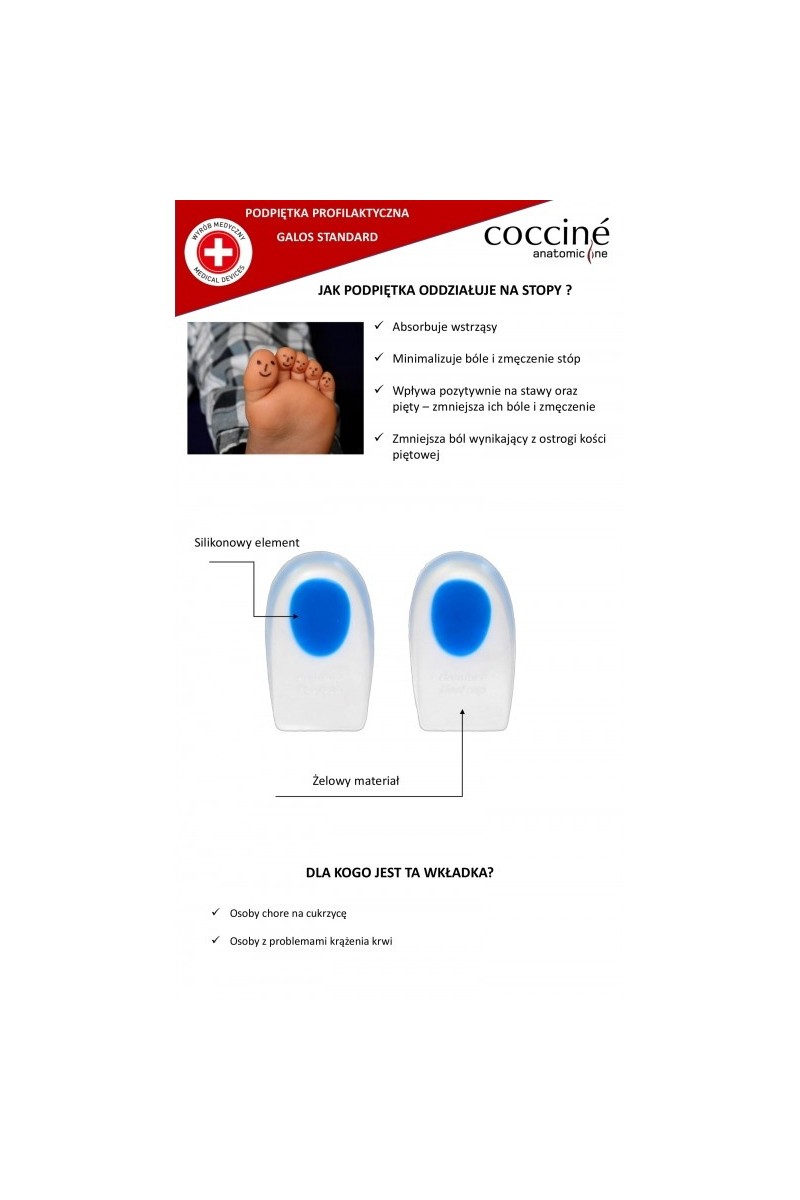 GALOS STANDARD – geliniai vidpadžiai sugeria smūgius, malšina pavargusias pėdas, sąnarių ir kulnų skausmus. Tinka sergantiems diabetu ir turintiems kraujotakos problemų žmonių pėdoms. Silikoninis elementas po kulnu pagerina vaikščiojimo komfortą ir malšina skausmą esant kulno ataugoms.