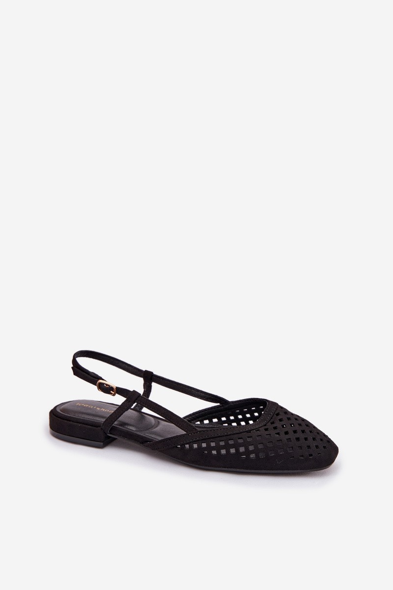 Women's ballerinas made of eco suede are a stylish and comfortable option for warm days. The open upper gives them lightness and a subtle character, while the open heels highlight the summer design. The flat heel ensures all-day comfort, and the adjustable strap with buckle allows for a perfect fit. This model is ideal for both everyday and more elegant outfits. When choosing a size, please refer to the size chart.