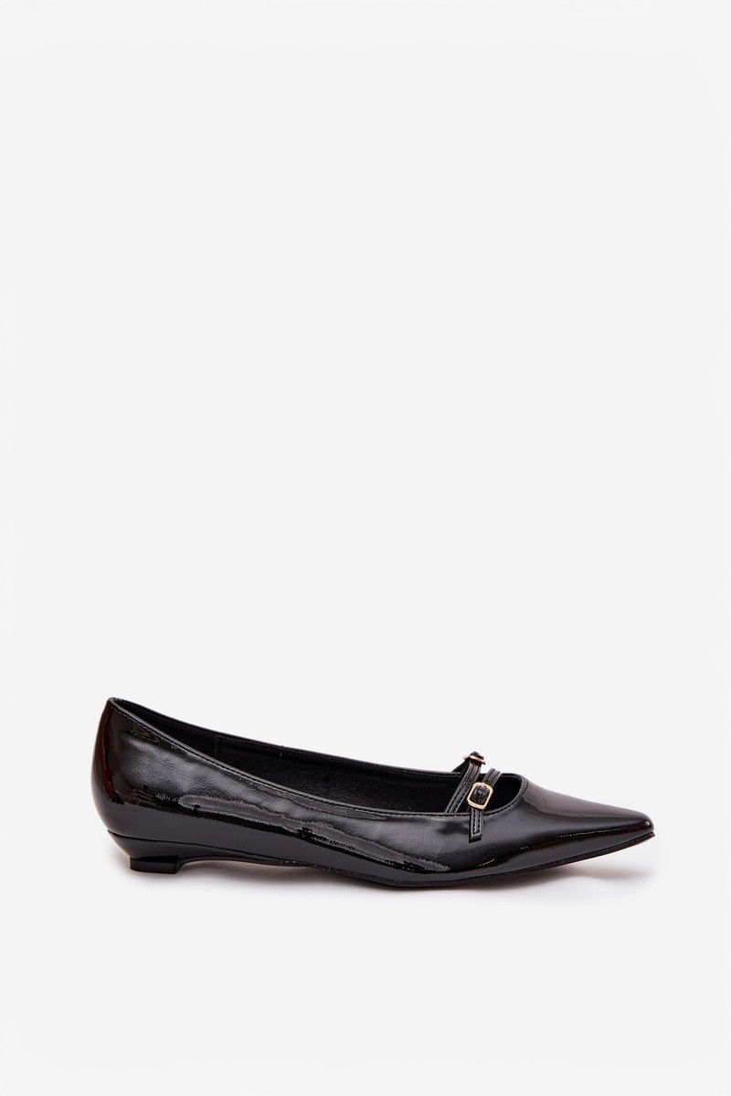 Stylish ballerinas made from patent eco-leather. The model features three thin straps that subtly adorn the foot while providing proper stability. The pointed toe visually slims the legs, and the flat heel guarantees comfort for all-day wear. These ballerinas are the perfect choice for both elegant styles and everyday wear when you want to look feminine and feel comfortable. Please refer to the size chart when choosing your size. When choosing a size, please refer to the size chart.