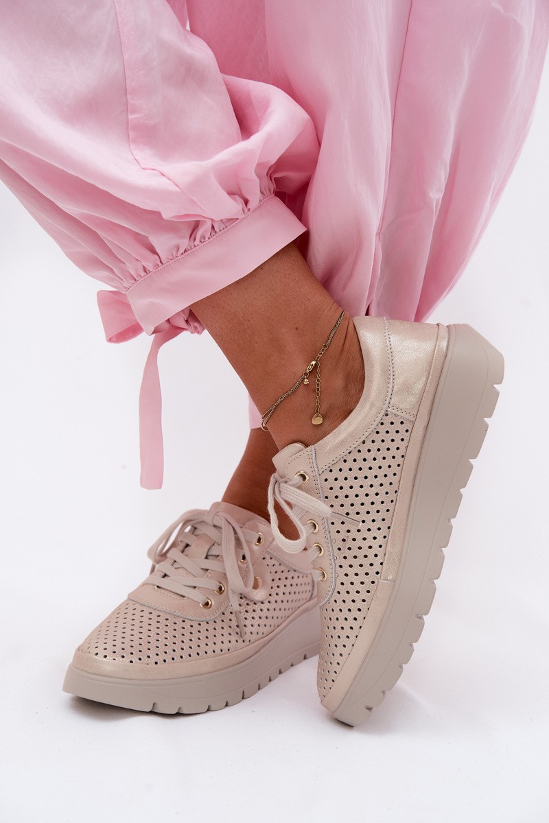 Leather Perforated Women's Shoes Vinceza 79629 Gold