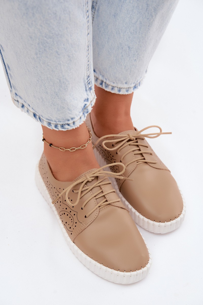 Women's Perforated Lace-up Shoes Dark Beige Pearla