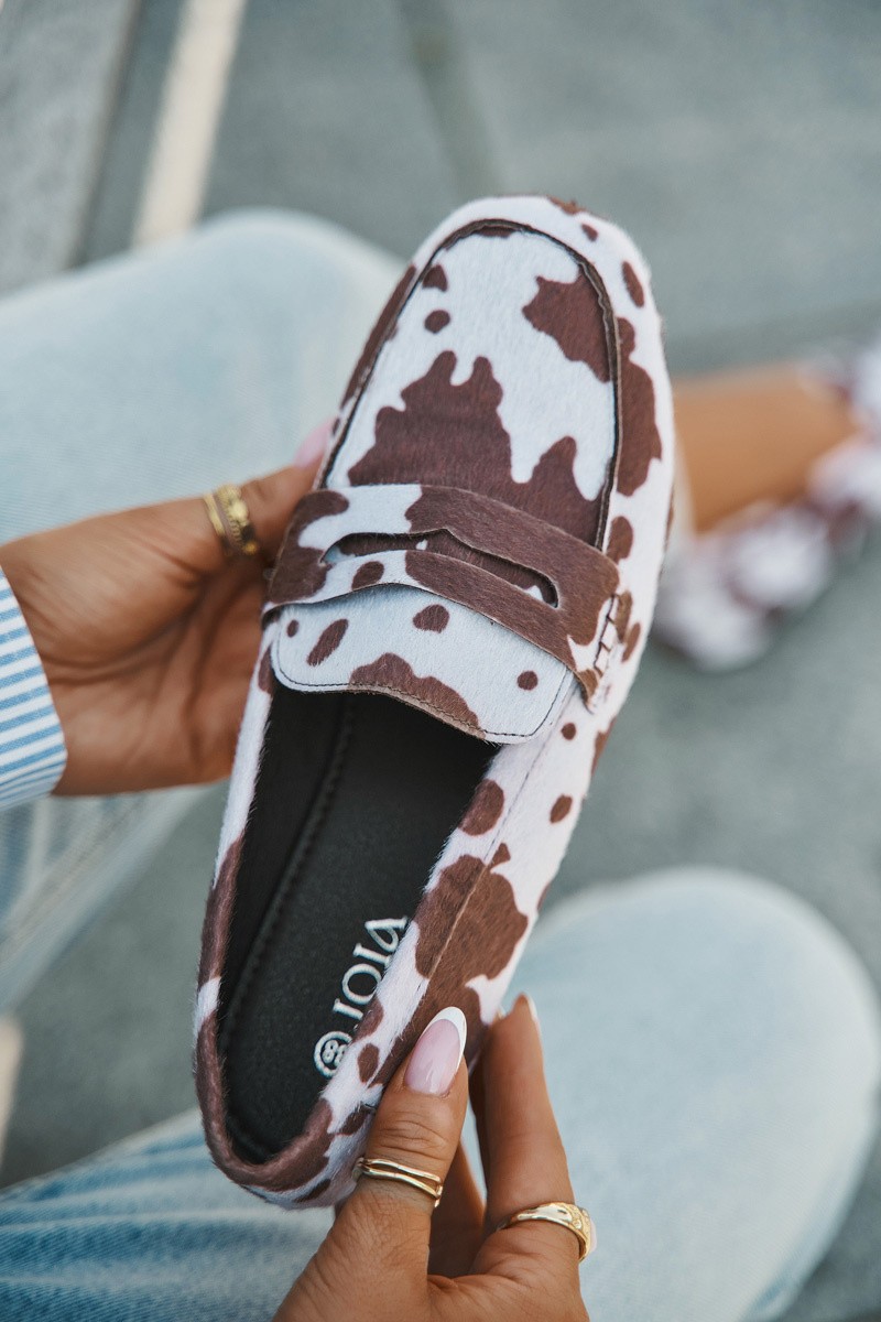 Loafers Moccasins Women's Flat In Patches Brown and White Soreline