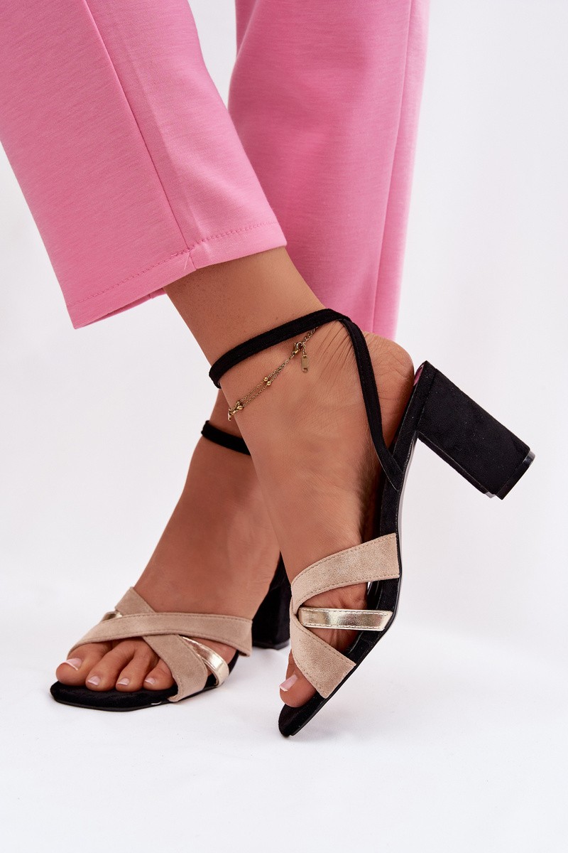 Women's Block Heel Sandals With Straps Eco Suede Black Karilora