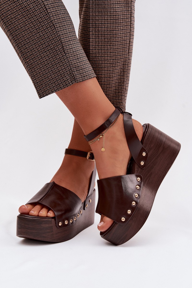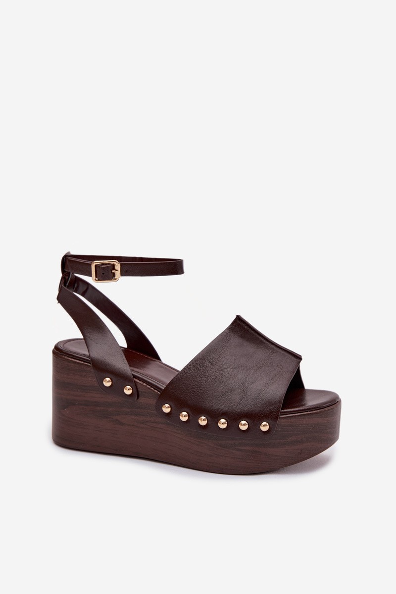 Women's Platform Sandals With Gold Buckles Chocolate Galorina
