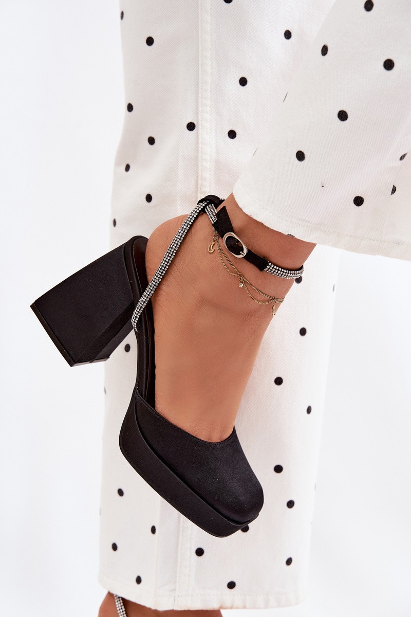 Women's satin-finish block heel sandals are an elegant option that combines classic style with subtle shine. The smooth, slightly glossy surface gives them a uniquely sophisticated look, making them perfect for both evening and more formal outfits. The stable heel shape ensures comfort while wearing. The decorative ankle strap makes the model look incredibly feminine and stylish. An ideal choice for celebrations, parties, or important occasions – anywhere elegance is desired. When choosing a size, please refer to the size chart.