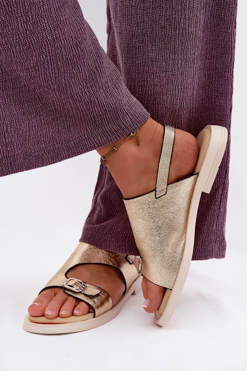 Leather Women's Flat Gold Sandals Vinceza 86434
