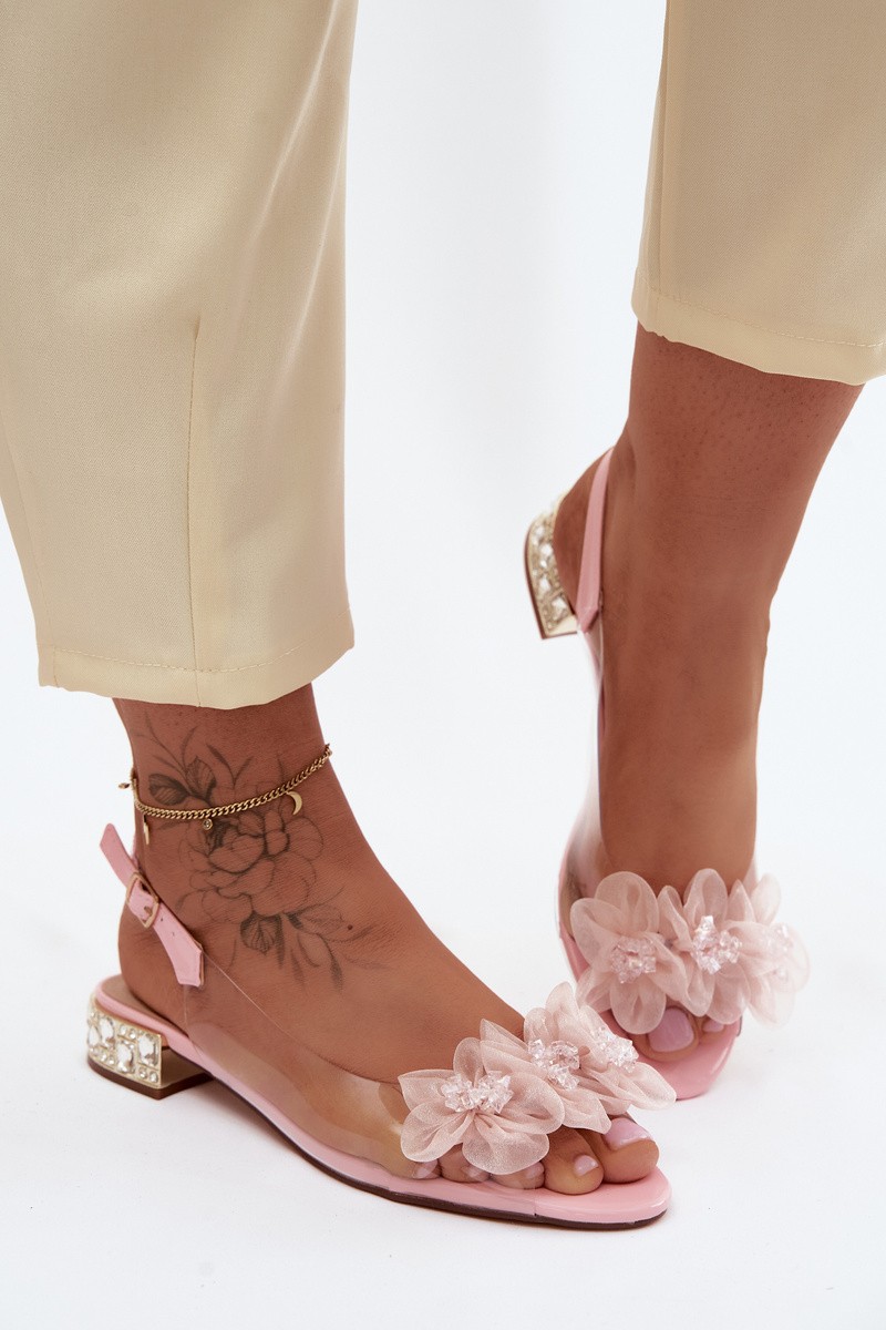Transparent Sandals With Crystals And Mesh Flowers D&A MR61-9006 Pink