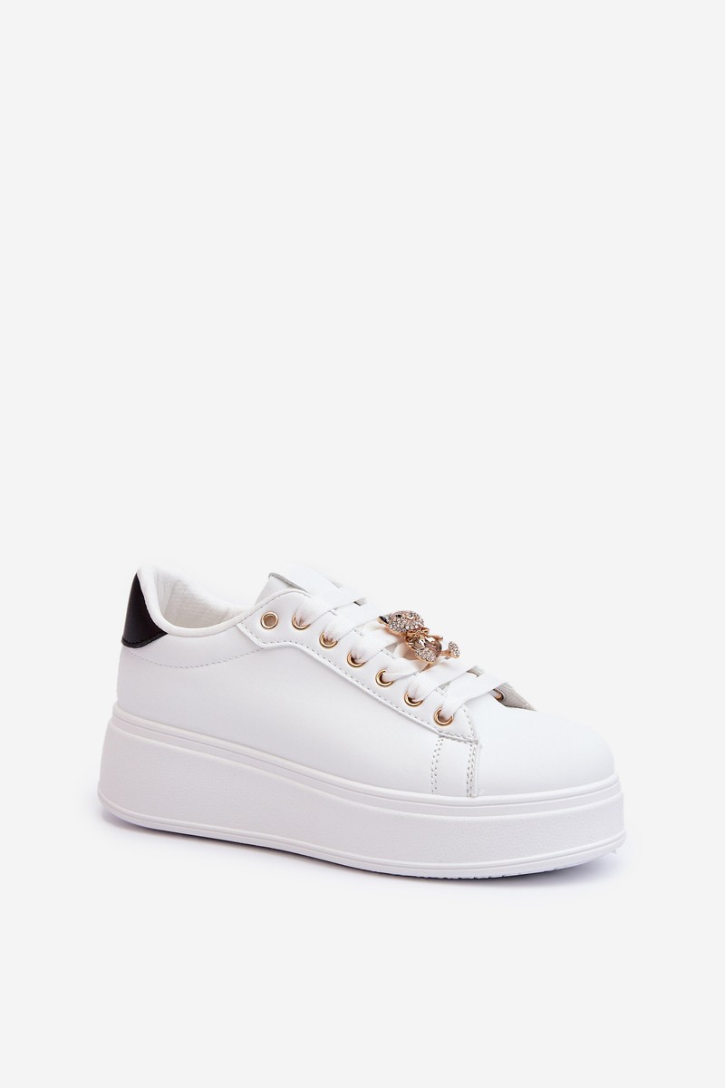 Women's fashionable sneakers with a cute teddy bear charm. Made of eco leather. Set on a platform. Rounded toes. This model will be perfect for both pants and dresses, skirts! When choosing a size, please refer to the size chart.