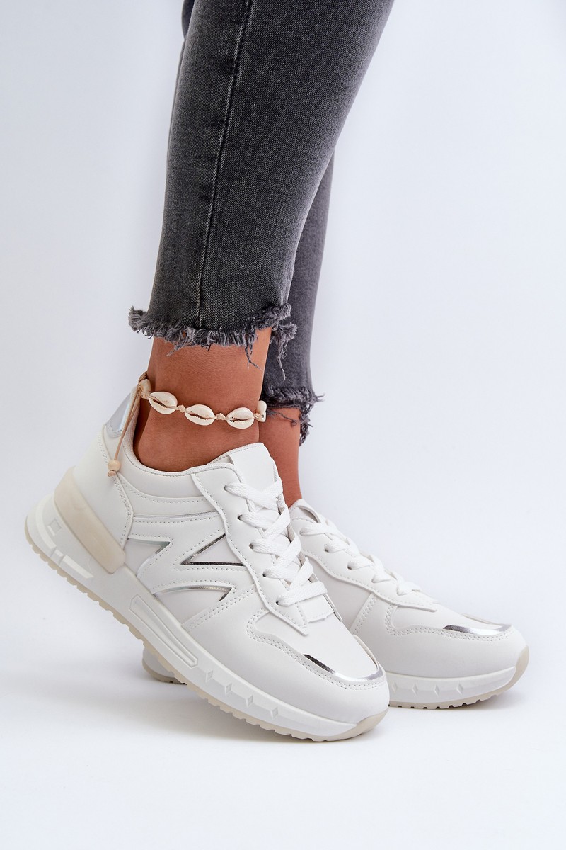 Women\'s White Faux Leather Sneakers Kaimans