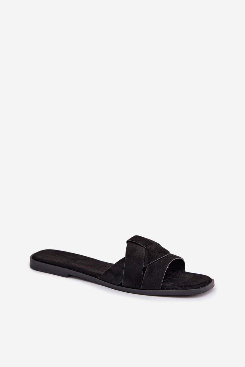 Stylish women's slides made of eco suede, perfect for summer for women who value comfort. The flat sole guarantees comfort while walking, and the front straps subtly emphasize the foot and add a fashionable touch. The classic yet elegant design makes these slides a great complement to many outfits. When choosing a size, please refer to the size chart.