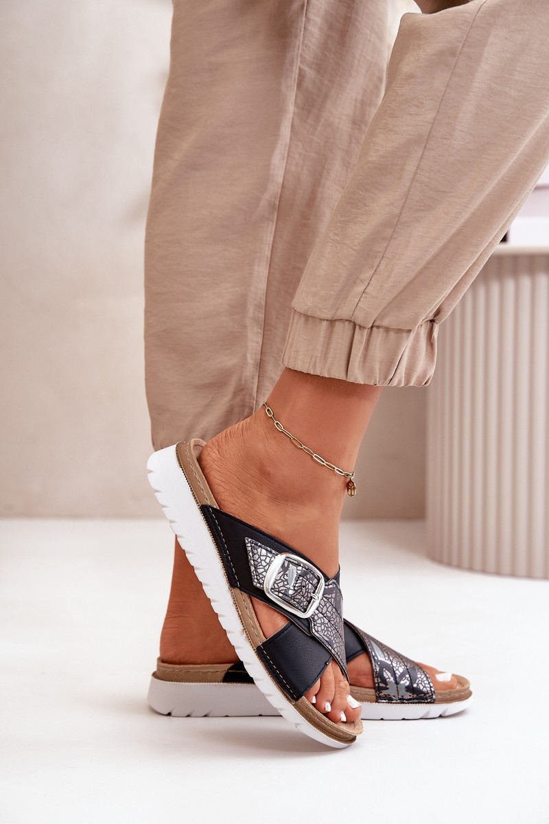 Comfortable Women's Slippers With Buckle Inblu CN000032 Black