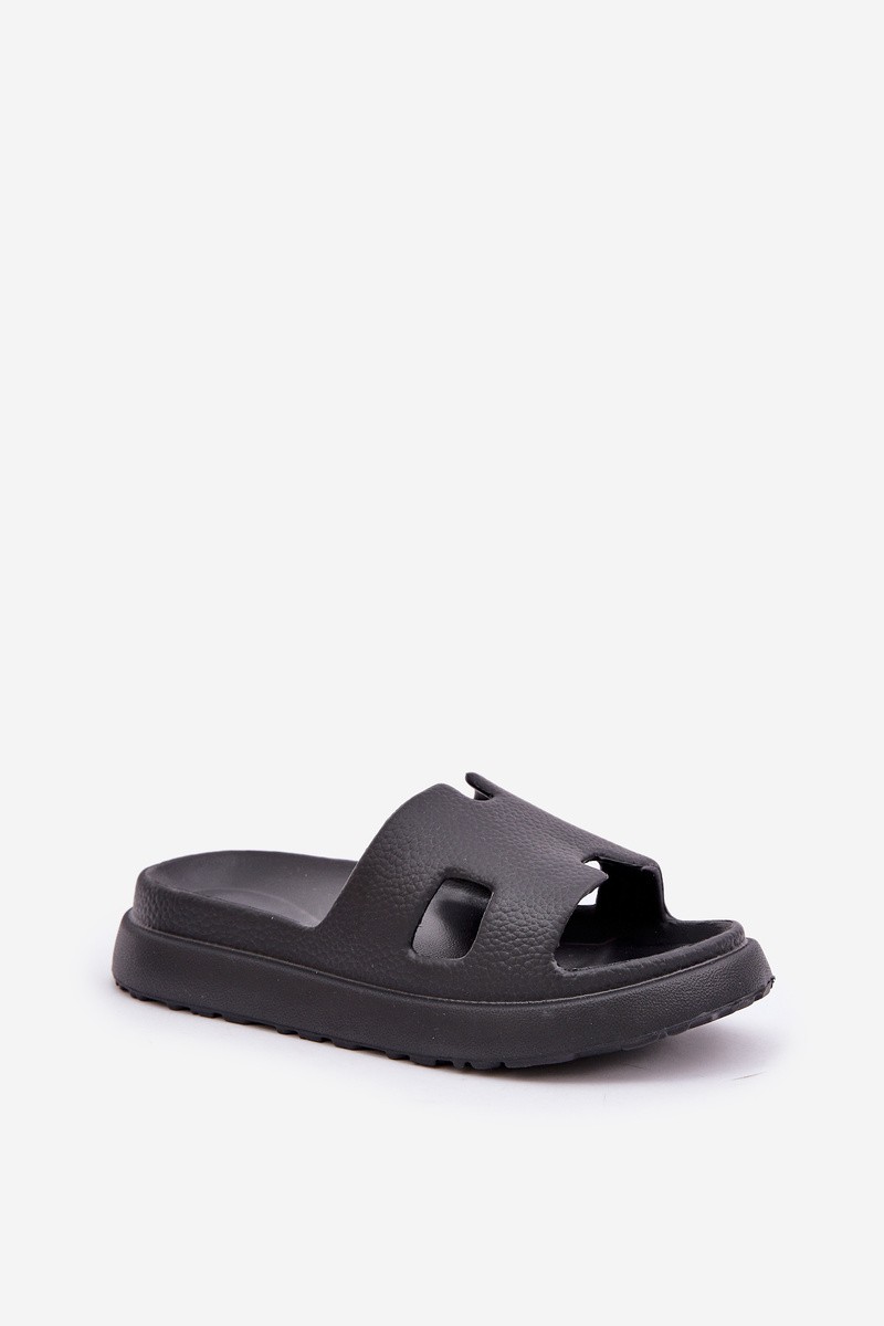 Lightweight foam slides on a platform, enhanced with cutouts that give them a modern character. They are perfect for summer activities, both for everyday wear and at the beach. When choosing a size, please refer to the size chart.