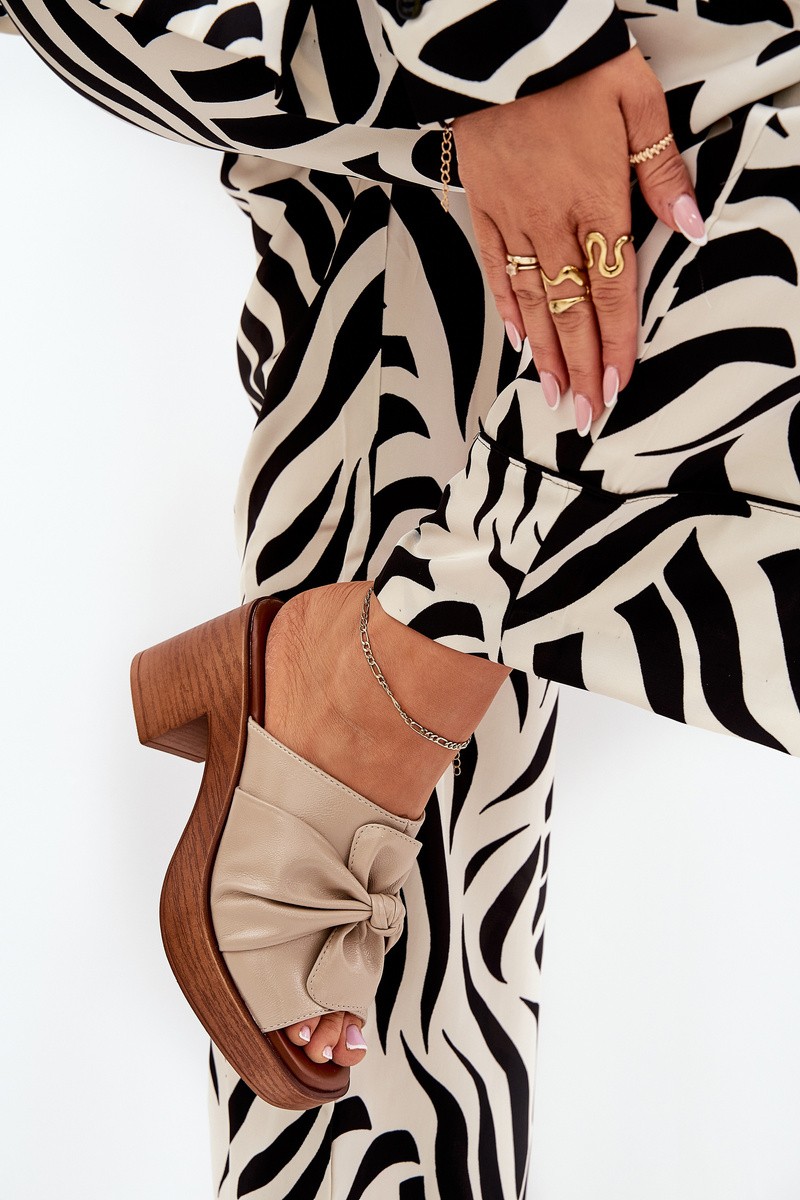 Ladies Heeled Slippers Made Of Eco Leather Beige Kikilla