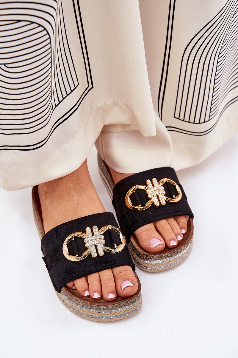 Women\'s Platform Sandals With Glitter And Gold Decoration Black Rilirea