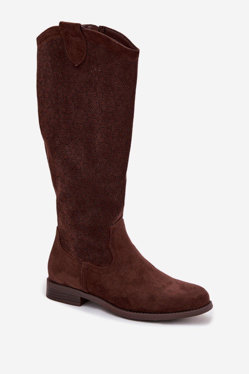 Moteriški nėriniuoti aulinukai su plokščiu kulnu S.Barski HY61-8022 šokolado spalvos