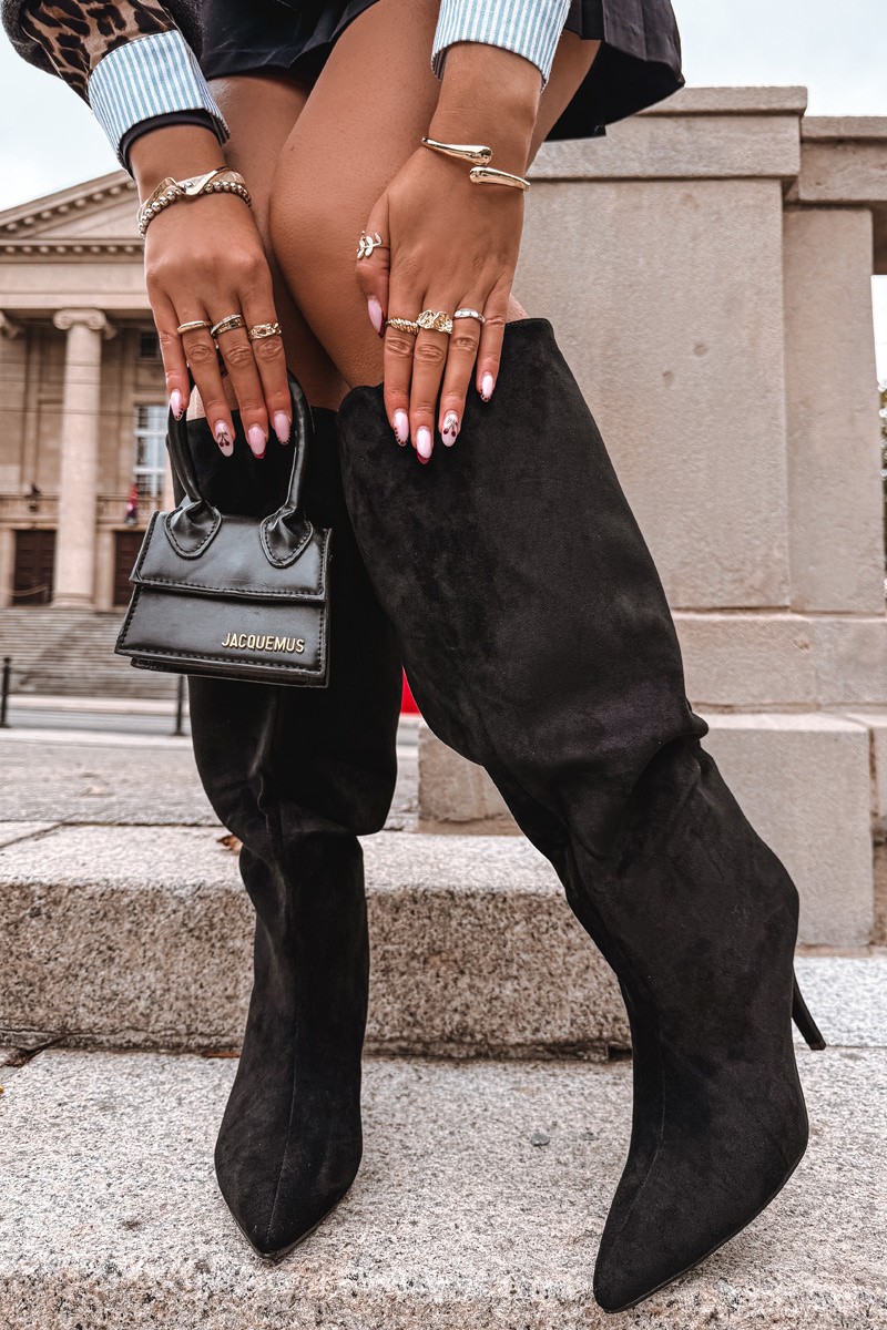 Įsegami moteriški aulinukai su kulnu iš ekologiškos zomšos, juodos spalvos, „Noretta“
