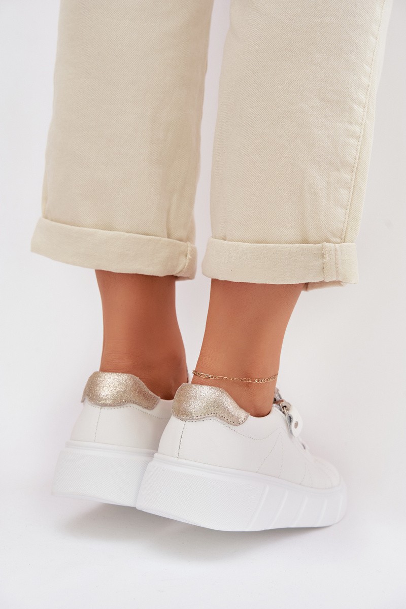 Leather Women's Loafers With Zipper White Althea