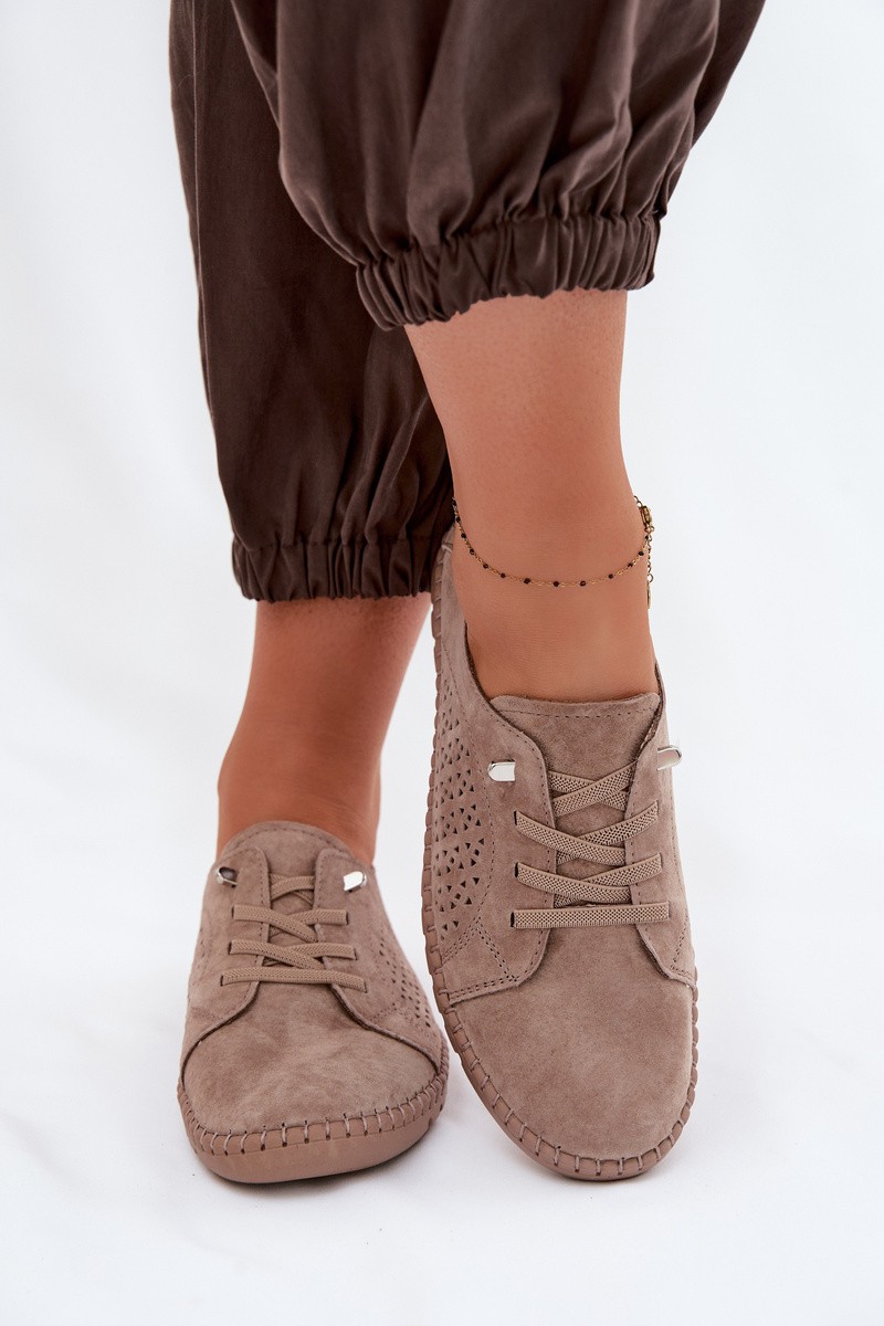Women's Perforated Shoes Made of Natural Suede Light Brown Feliva