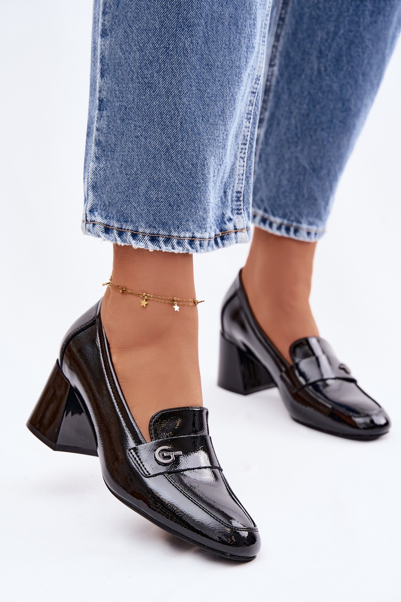 Leather Patent Women's Heeled Shoes Vinceza 18119 Black