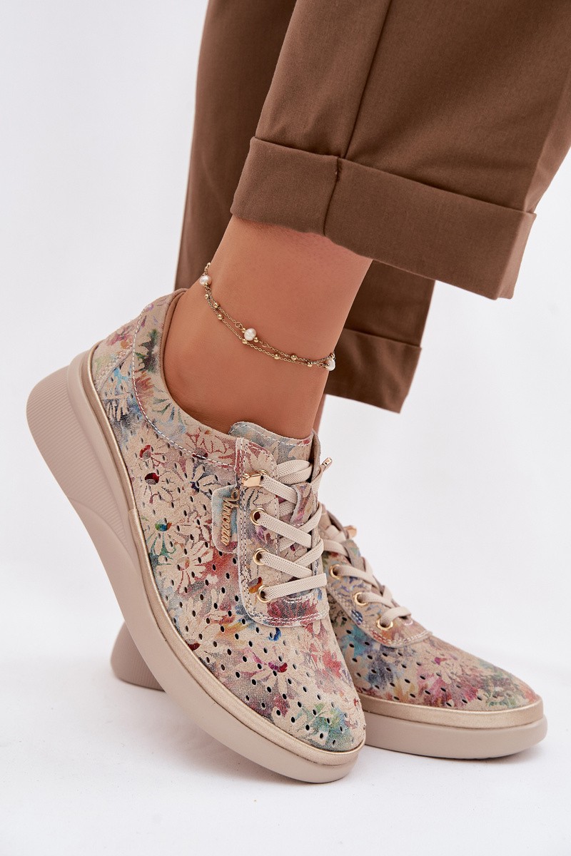 Vinceza Women's Suede Perforated Loafers 79603 Beige