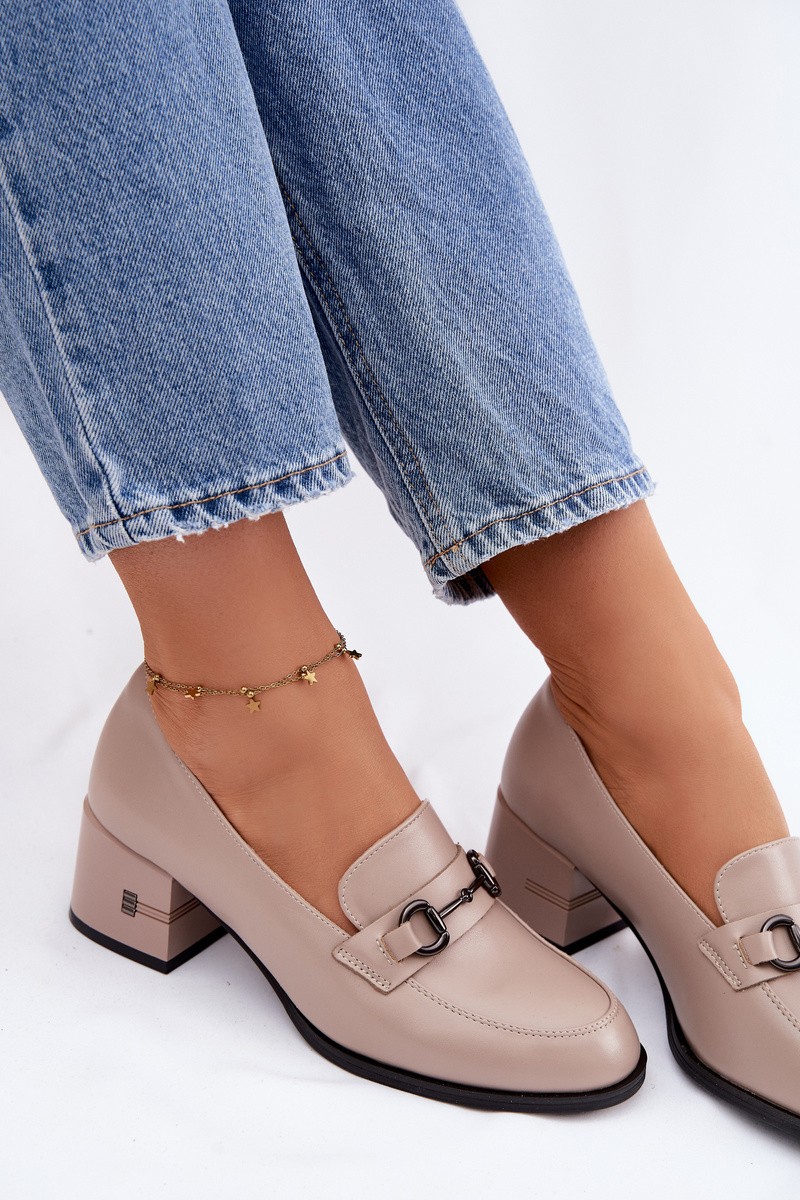 Leather Women's Pumps with Heel Vinceza 18116 Beige