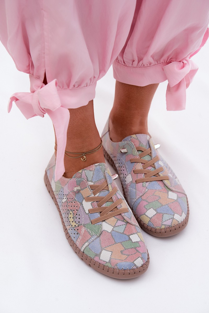 Women's suede loafers are an exceptional choice for women who value original style and comfort. The mosaic-inspired pattern gives them a unique character, making them stand out from classic models. Rounded toes emphasize their delicate appearance, and laces allow for a good fit. The leather comfort shoes insole provides comfort for everyday wear. This model is perfect for daily outfits, adding boldness and a stylish touch. When choosing a size, please refer to the size chart.