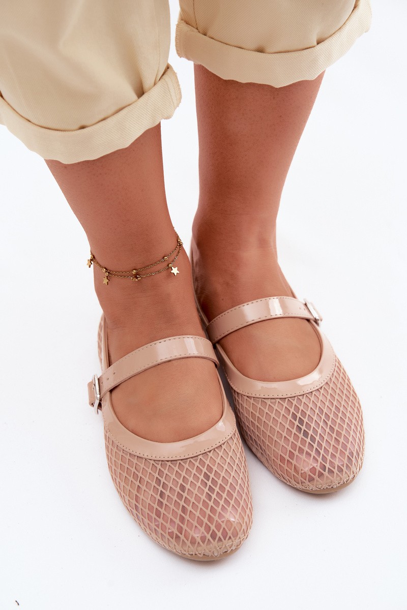 Mesh Ballerinas with Strap Beige Gaia
