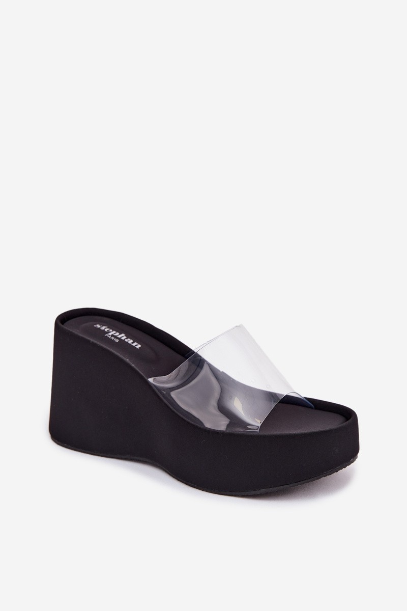 Women's Platform Sandals With Transparent Strap Black Zolretia