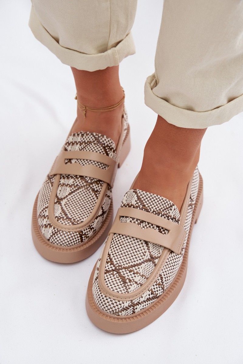 Women's loafers made from mixed materials are a stylish option with an original, patterned finish. The model attracts attention with an interesting combination of textures and colors, giving the footwear a fashionable character. The soft insole made of eco-leather ensures comfort for everyday wear. These comfortable loafers will perfectly complement casual outfits. When choosing a size, please refer to the size chart.