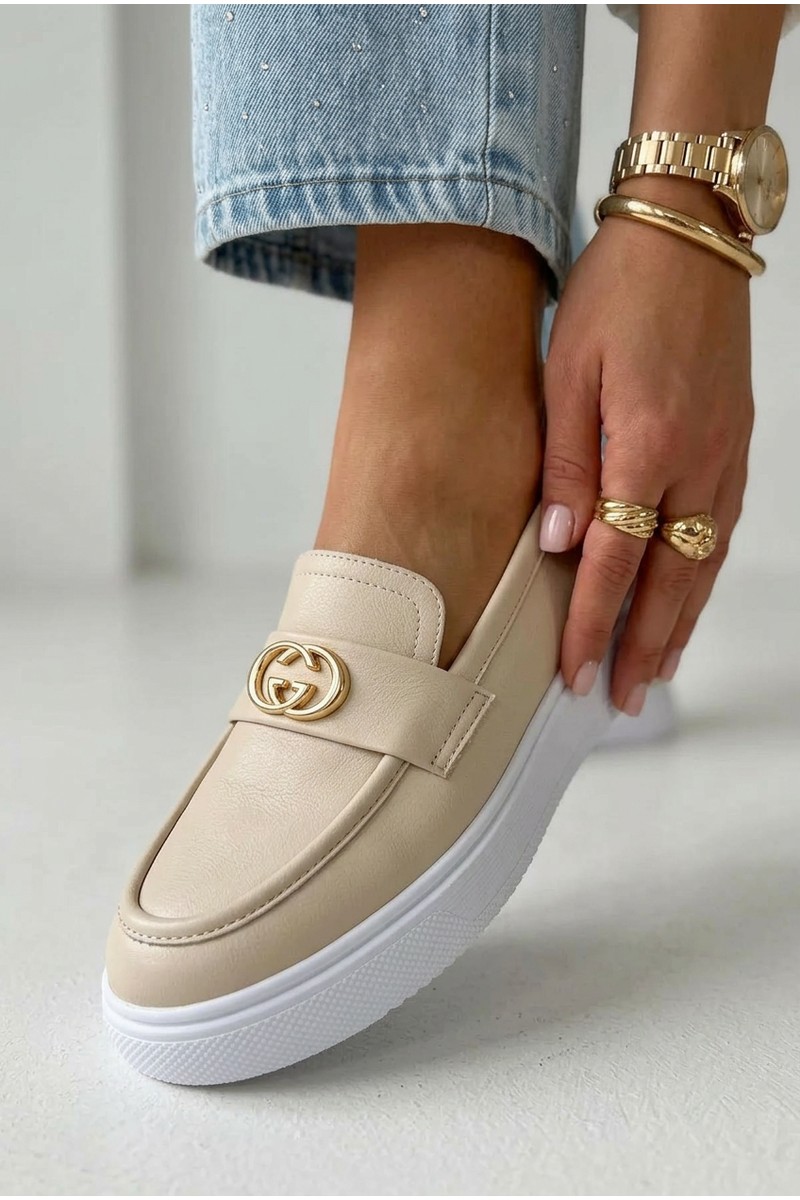 Odiniai moteriški platforminiai mokasinai Vinceza smėlio spalvos