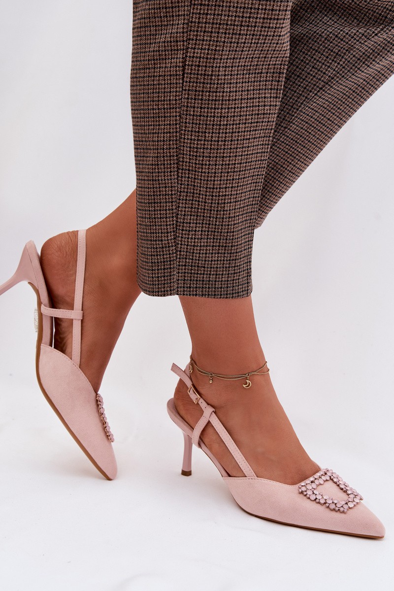 Moteriškos aukštakulnės basutės su papuošimais, rožinės spalvos, Ismeria