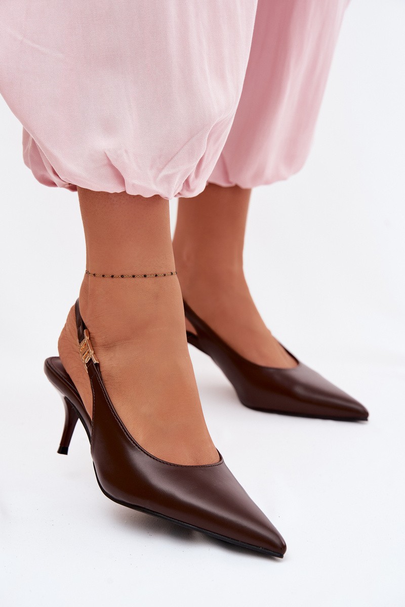 Women's Leather Look Sandals With Heel Chocolate Jelissey