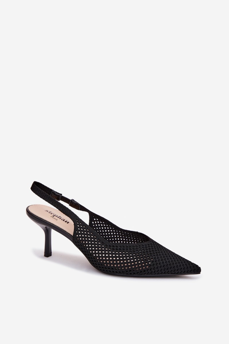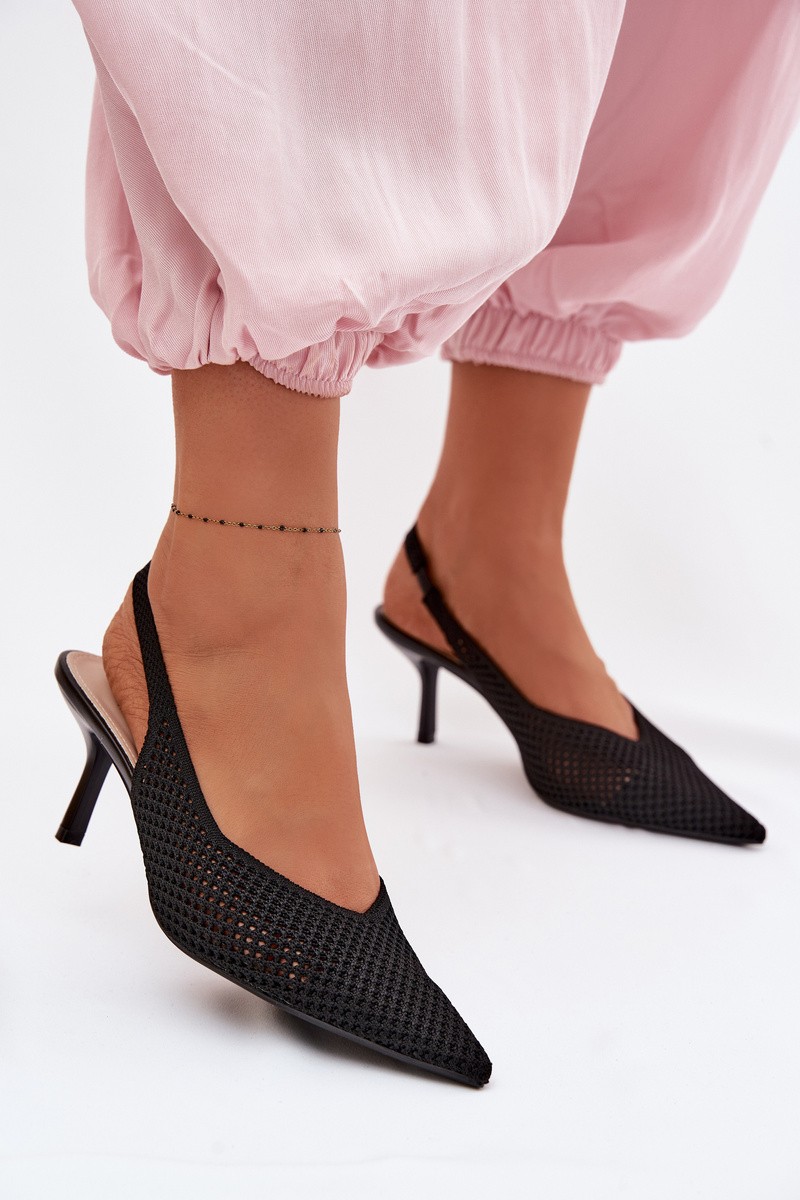 Women's Mesh Material Sandals With Heel Black Emiliana