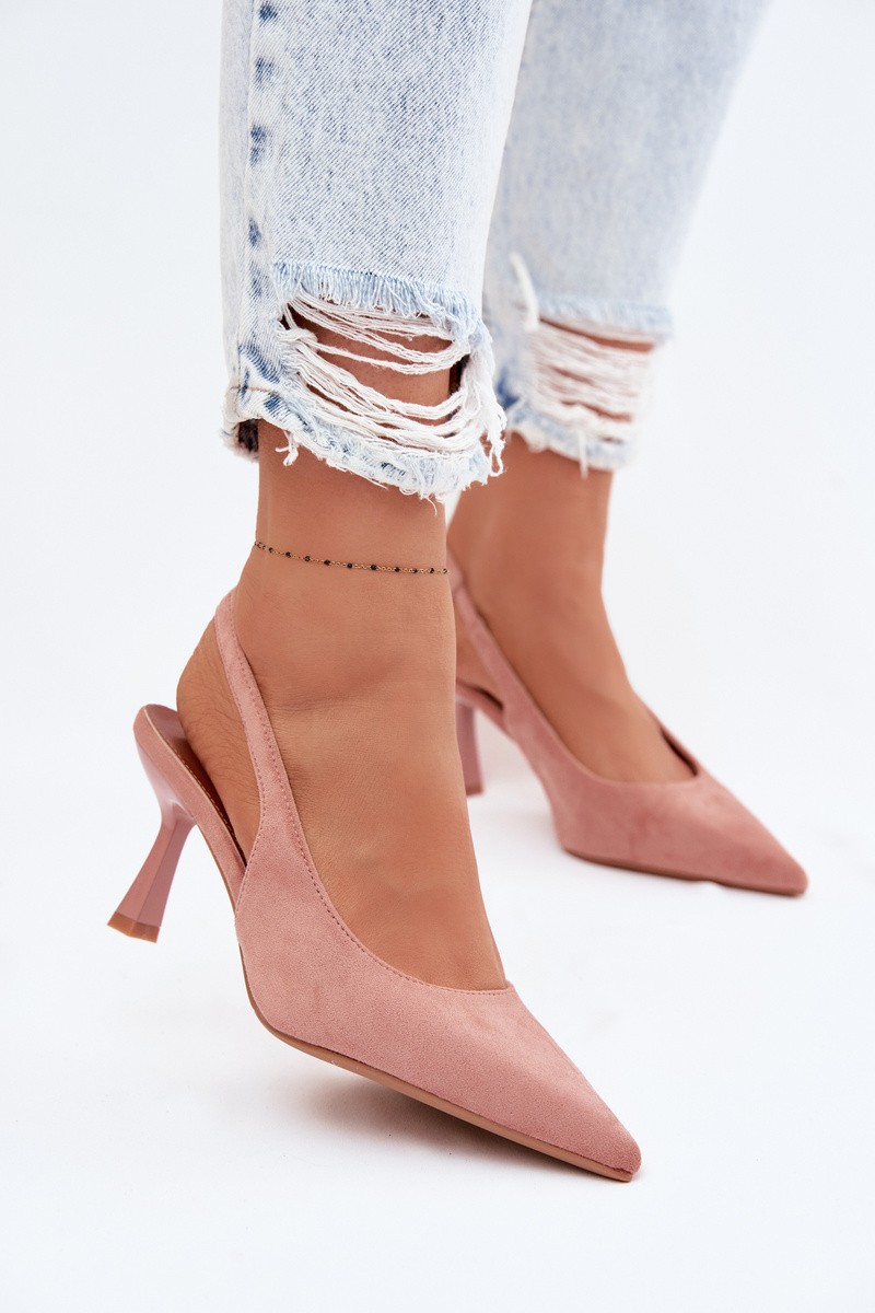 Women's Heeled Sandals Made of Faux Suede Pink Saria