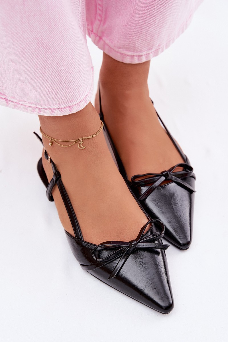 Moteriškos dirbtinės odos basutės žemu kulnu, juodos Jelmera