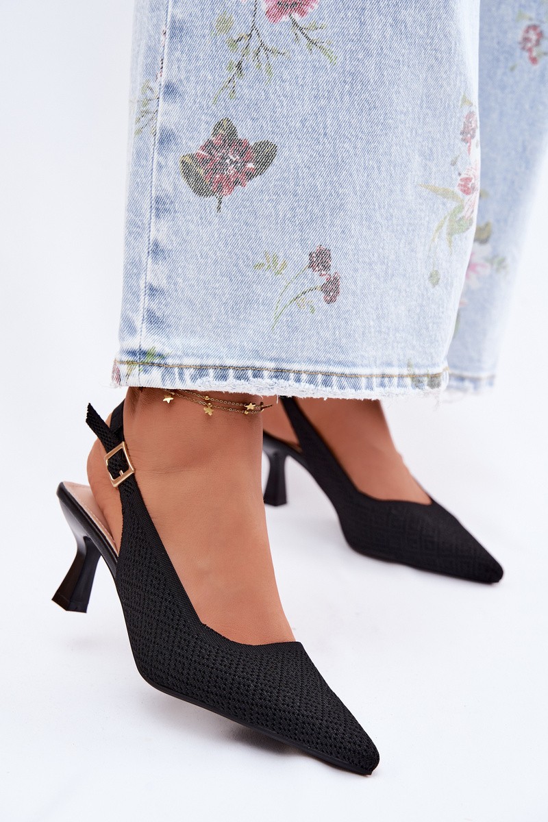 Women's sandals made from high-quality textile material are an elegant choice for women who value subtlety and stylish appearance. The delicate fabric texture gives the footwear lightness and a unique character, making the model perfectly aligned with the latest trends. Pointed toes visually slim the foot, and the slender heel beautifully accentuates the silhouette, while ensuring stability and comfort while walking. The carefully designed shape makes the sandals extremely feminine and elegant. An ideal choice for various occasions – perfect for weddings, parties, banquets, or romantic dinners. They complement both classic dresses and more modern styles. When choosing a size, please refer to the size chart.