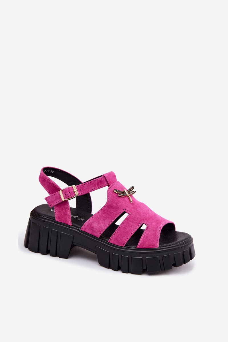 Women's sandals made of natural leather by Vinceza are a stylish choice for warm days, combining comfort with a unique look. Their elegant design works well for both everyday and more feminine outfits. The platform provides walking comfort and subtly accentuates the silhouette. The buckle closure allows for a perfect fit, increasing ease of wear. An eye-catching decorative detail in the form of a dragonfly at the front adds a special, decorative touch. The soft leather insole ensures comfort even during extended wear. Perfect for walks, outings, or summer gatherings when style and comfort matter. When choosing a size, please refer to the size chart.