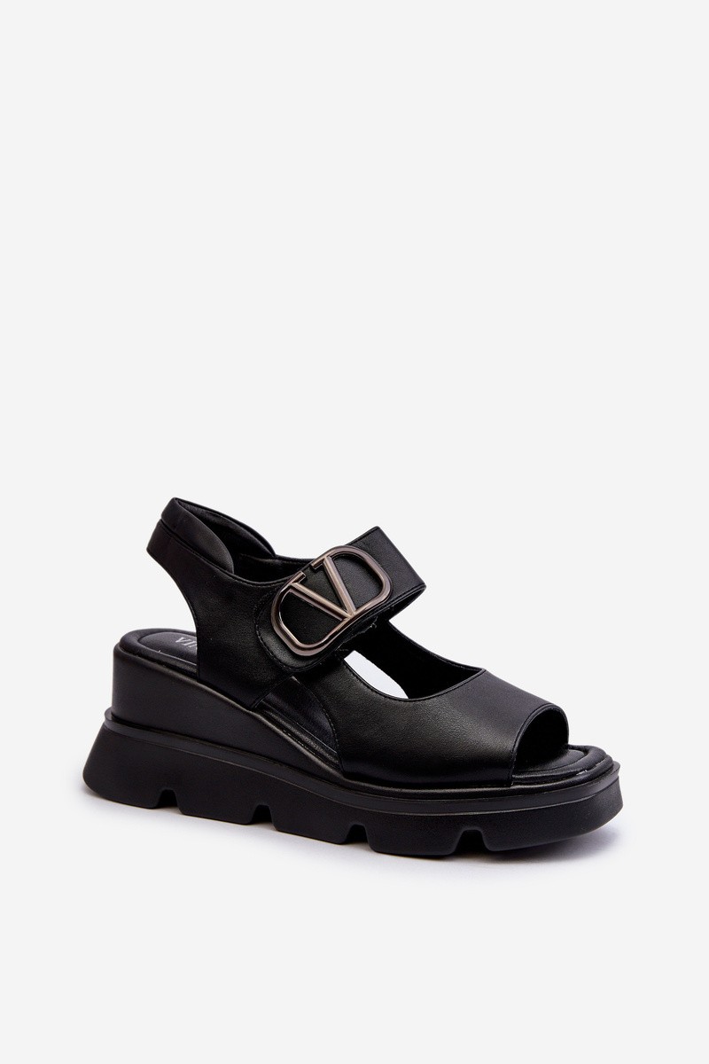 Moteriškos juodos basutės su pleištu ir platforma iš ekologiškos odos Triaola