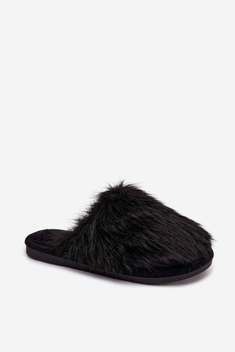 Juodos moteriškos šlepetės su kailiu „Katrisse“