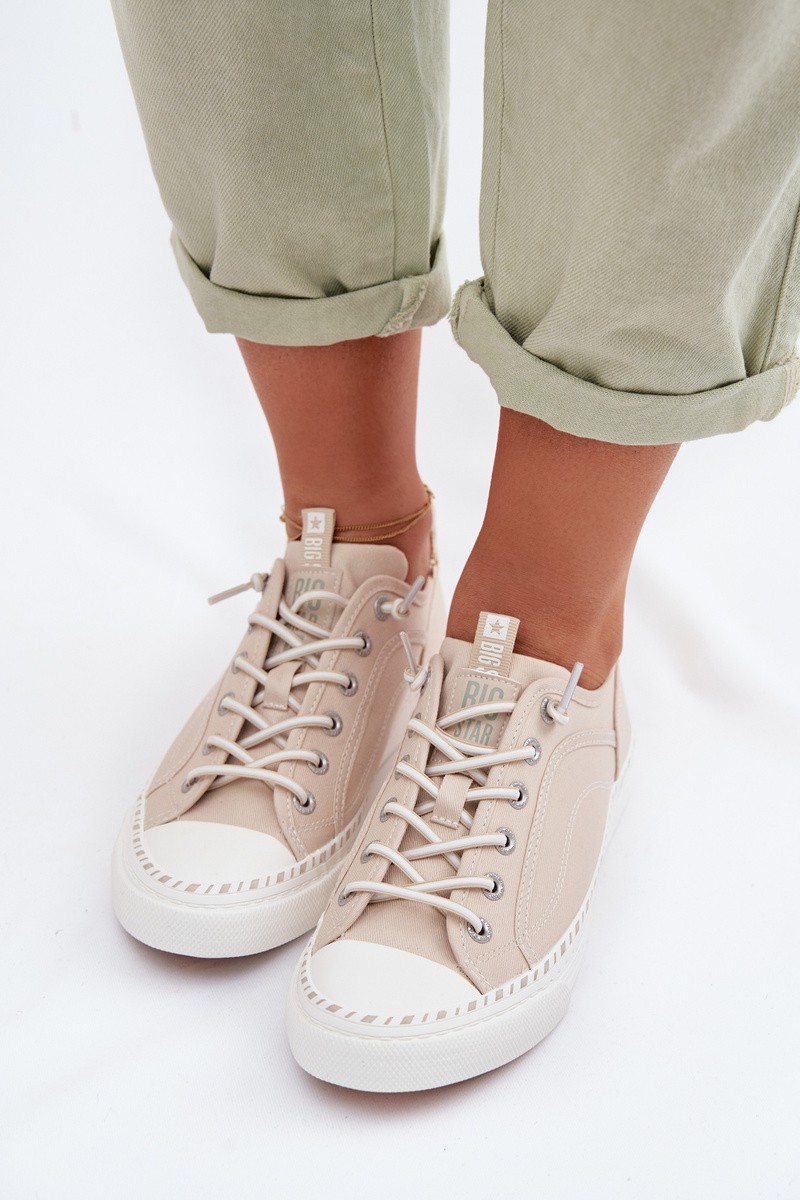 Moteriški „Big Star“ sportbačiai – tai lengvas ir patogus modelis, puikiai tinkantis kasdieniam avėjimui. Viršutinė dalis pagaminta iš tekstilinės medžiagos, todėl avalynė yra laidi orui ir patogi avėti. Šis modelis pasižymi elastingais raišteliais, kurie palengvina batų apsiavimą ir užtikrina geresnį prigludimą. Klasikinis dizainas dera su daugeliu stilių – nuo džinsų iki sportinės ar laisvalaikio aprangos. Šie praktiški batai idealiai tinka kasdieniam avėjimui. Renkantis dydį, prašome remtis dydžių lentele.
