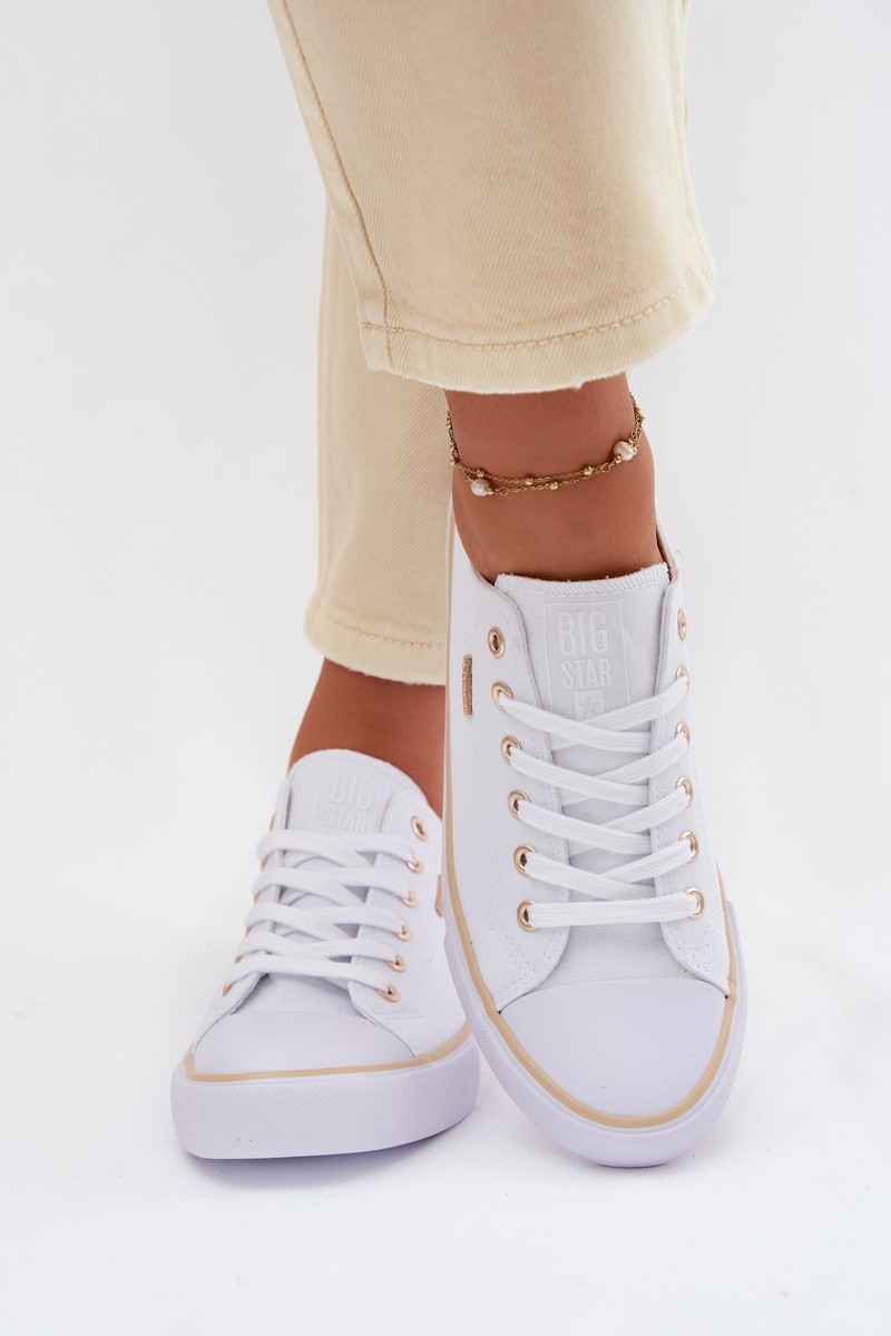 Women's Big Star sneakers are a classic and timeless model that work perfectly in everyday outfits. Made from textile material, they offer lightness and comfort, making them an ideal choice for daily wear. The shoes feature a low-cut design that has enjoyed enduring popularity for years and easily matches many wardrobe items. Their simple, universal look makes them perfect with jeans, shorts, dresses, or skirts. A subtle detail that highlights the character of the footwear is a small brand logo placed on the side, adding a stylish finishing touch. When choosing a size, please refer to the size chart.