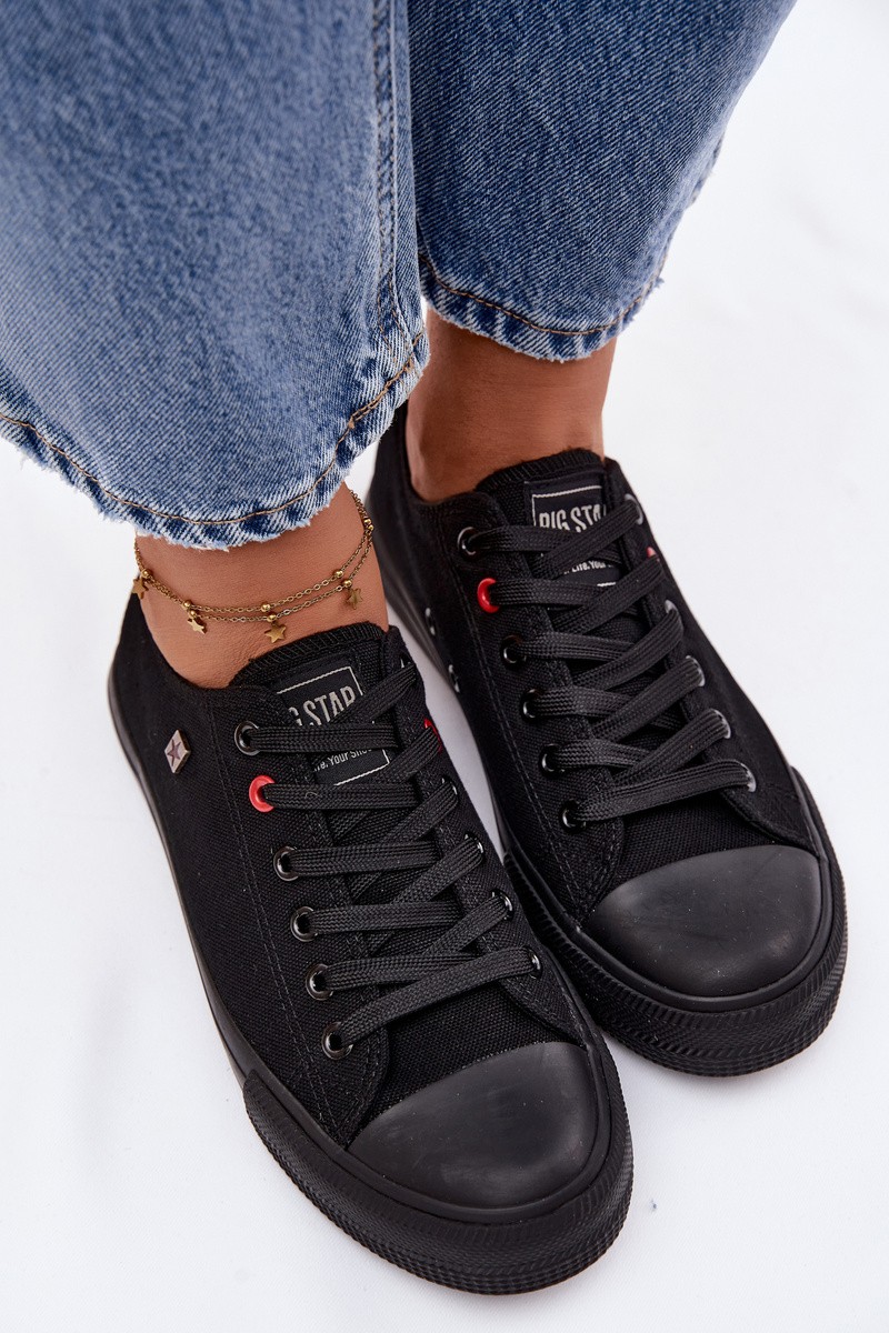 Women's sneakers from Big Star are a classic and versatile everyday choice. Made from textile material, they are lightweight and breathable, ensuring comfort all day long. The model features a rubber sole that provides good grip and durability. Classic lacing allows for a perfect fit, and the low profile makes these shoes pair well with many styles. These timeless sneakers are perfect for daily casual outfits. When choosing a size, please refer to the size chart.