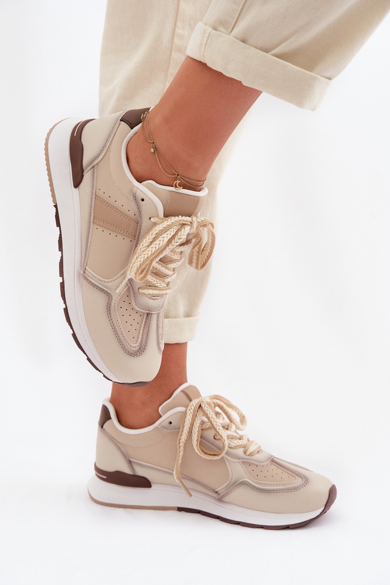 Moteriški sportbačiai iš eko odos, smėlio spalvos, Kelira