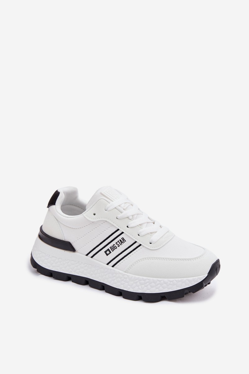 Women's sneakers by Big Star are a trendy and comfortable everyday model. Made from a combination of textile material and eco-leather, they stand out with a modern look and comfort of wear. Set on a platform that adds a few centimeters of height and provides stability while walking. The classic lacing allows for a customized fit. This model features an HI-POLY SYSTEM insole made from recycled materials. It is breathable, absorbs moisture well, and cushions shocks, increasing comfort. Additionally, it is durable and resistant to wear and deformation, making these sneakers perfect for daily use. When choosing a size, please refer to the size chart.